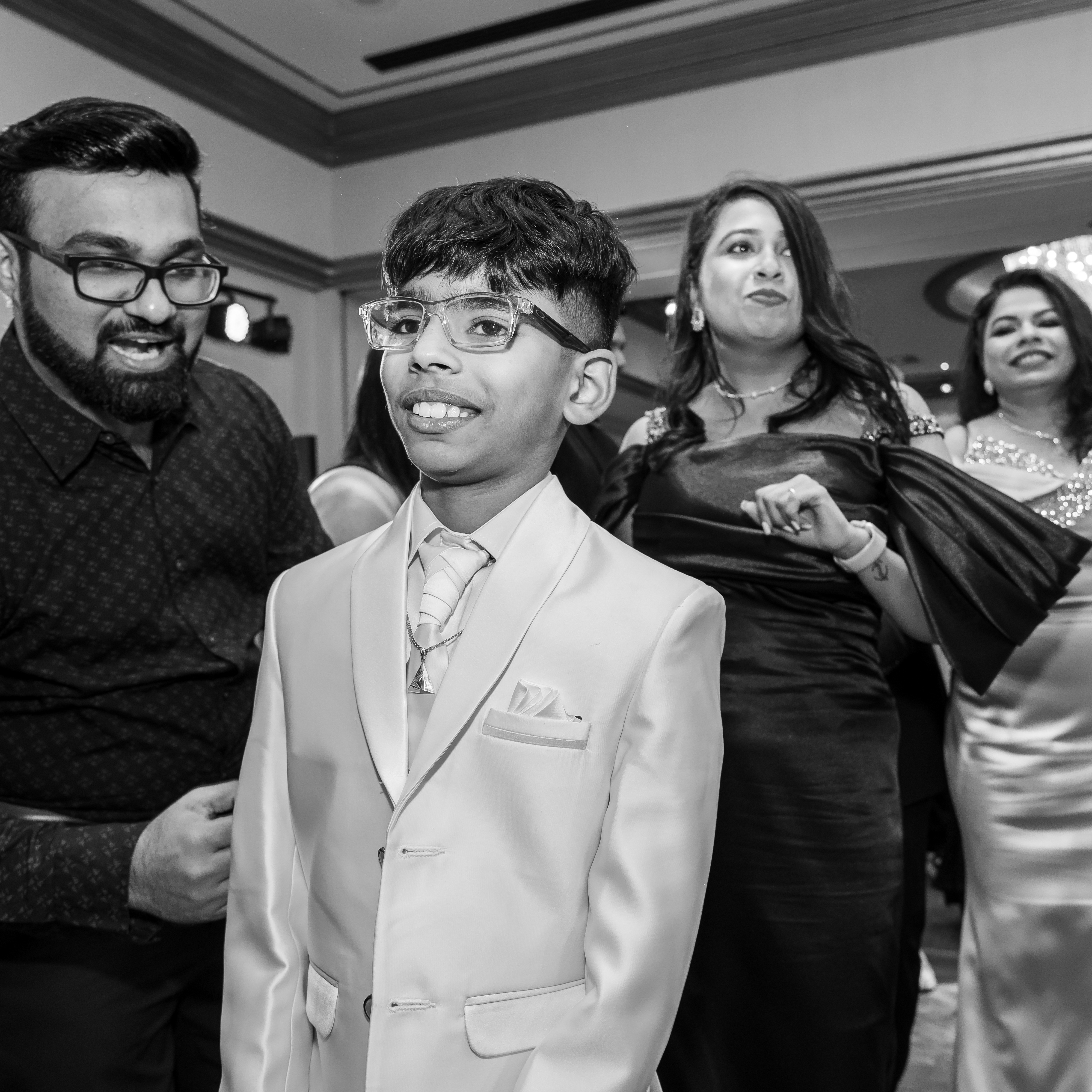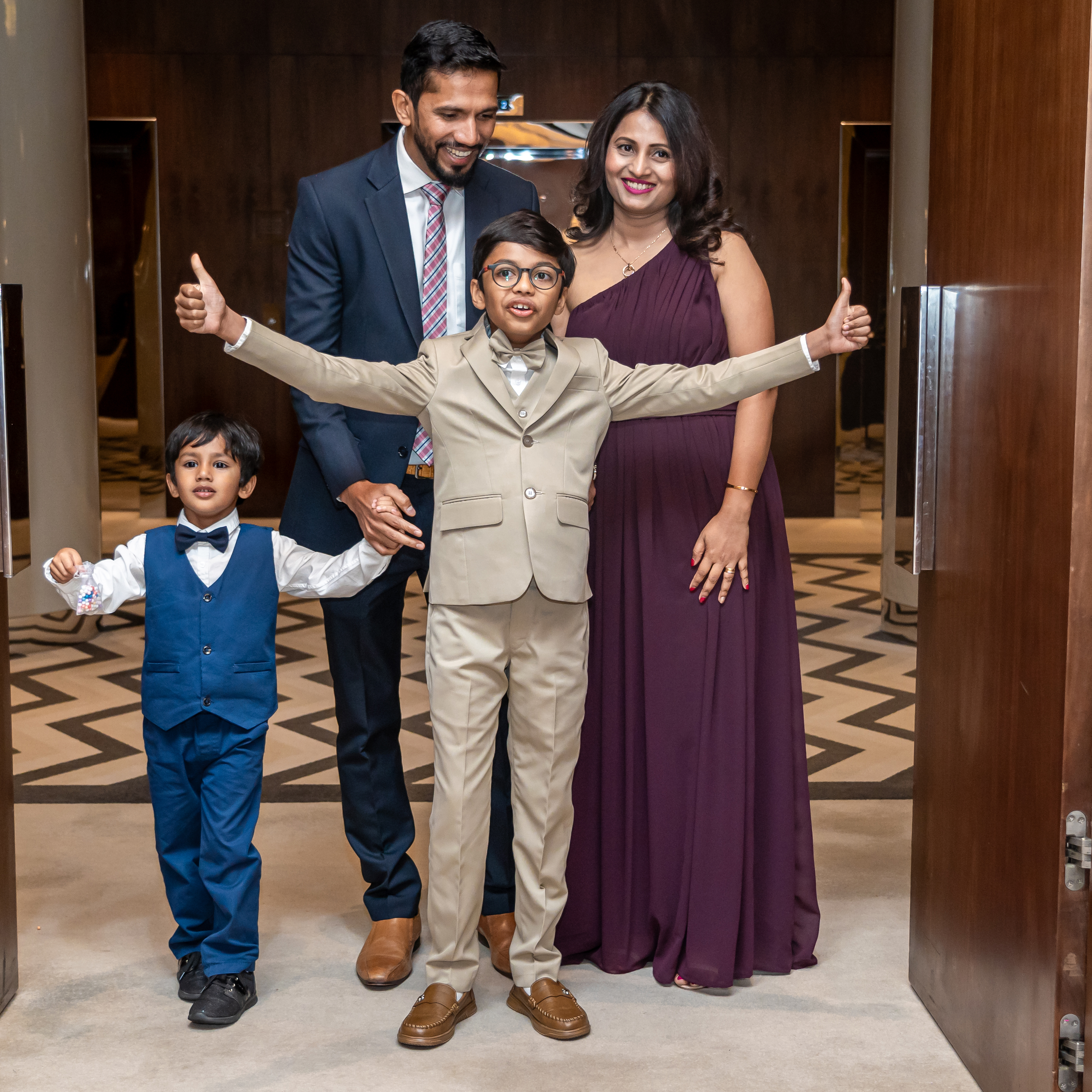 Beautifully composed family photographs with parents, siblings, and loved ones.